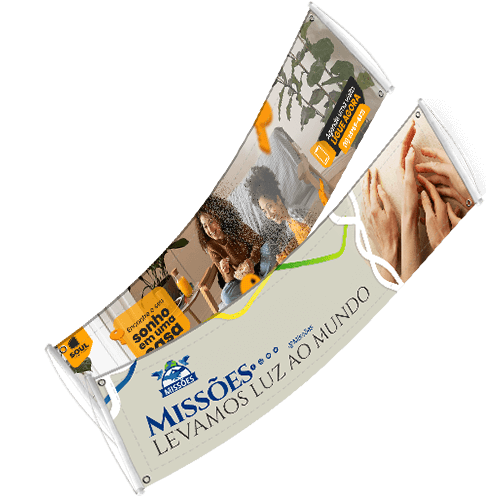 Nem sempre a faixa precisa ser retangular ou convencional. Formatos diferentes, cortes criativos ou banners suspensos podem chamar ainda mais atenção e despertar curiosidade.